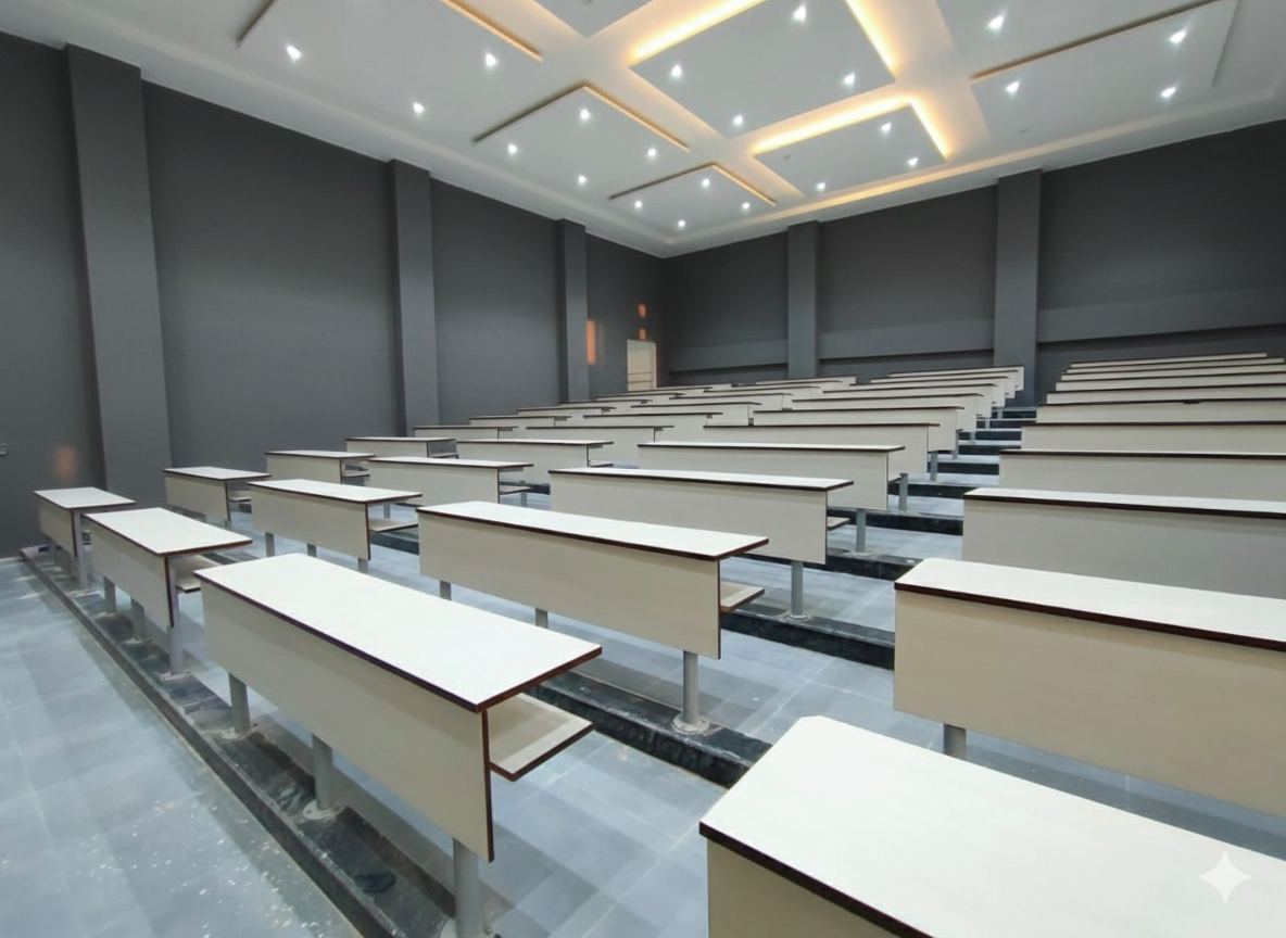 500 Curved Seats Installed in 2 Days Manav Rachna’s circular lecture theatres required custom-curved seating, one of the most complex installation formats in education infrastructure. Picano deployed a 25-member on-site team and diverted production capacity exclusively for this project — completing the entire seating installation for 500 students in just 48 hours. A near-impossible job, delivered with precision.